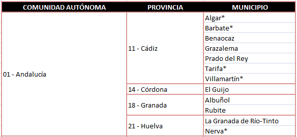 Para descargar el PDF con el listado completo por comunidad autónoma pinche aquí