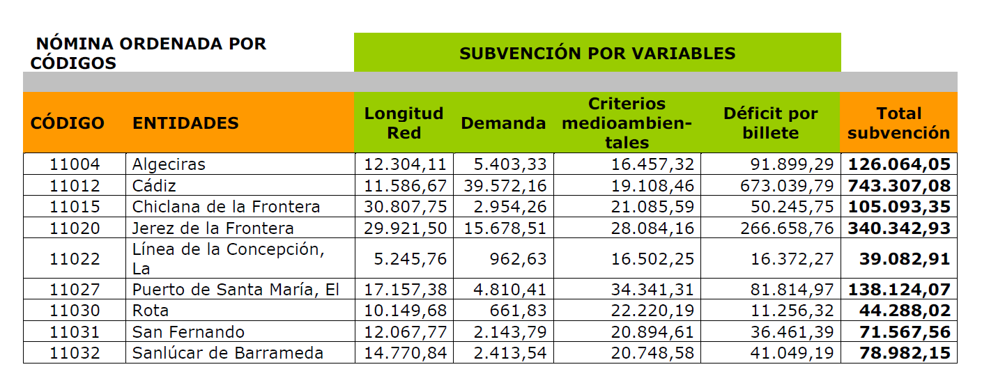 Subvenciones al transporte colectivo urbano